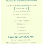 L’association de chasse Boussac-Corn organise son repas de fin d’année ouvert à tous !