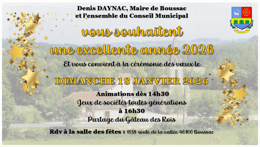 Lors de cette cérémonie, la « Gazette de Boussac », édition 2025, sera distribuée à chaque famille puis disponible en mairie (format papier ou PDF) sur simple demande !